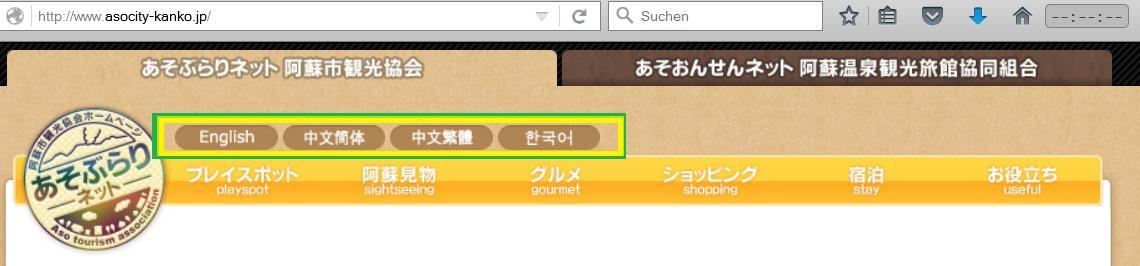 Beispiel: Sprachbalken bei www.asocity-kanko.jp (führt zu Maschinenübersetzungen)