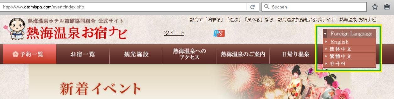 Beispiel: Sprachbalken bei www.asocity-kanko.jp (führt zu Maschinenübersetzungen)