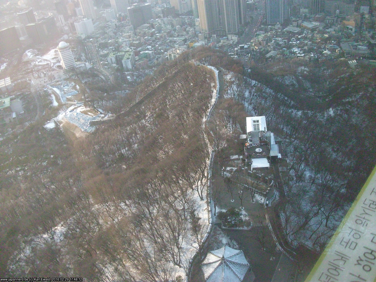Nun waren es nur noch wenige Meter zum N Seoul Tower. Im nachhinein betrachtet, hätte ich besser vorher noch den Berg genauer inspiziert (z.B. zu dem Funkturm daneben rüberschauen, oder wie die Stadtmauer weitergeht), denn als ich oben war, ist mir die Idee gekommen, die Dämmerung abzuwarten, und im Dunkeln war danach nicht mehr viel auszurichten (und ich hatte dann auch keine Lust mehr).