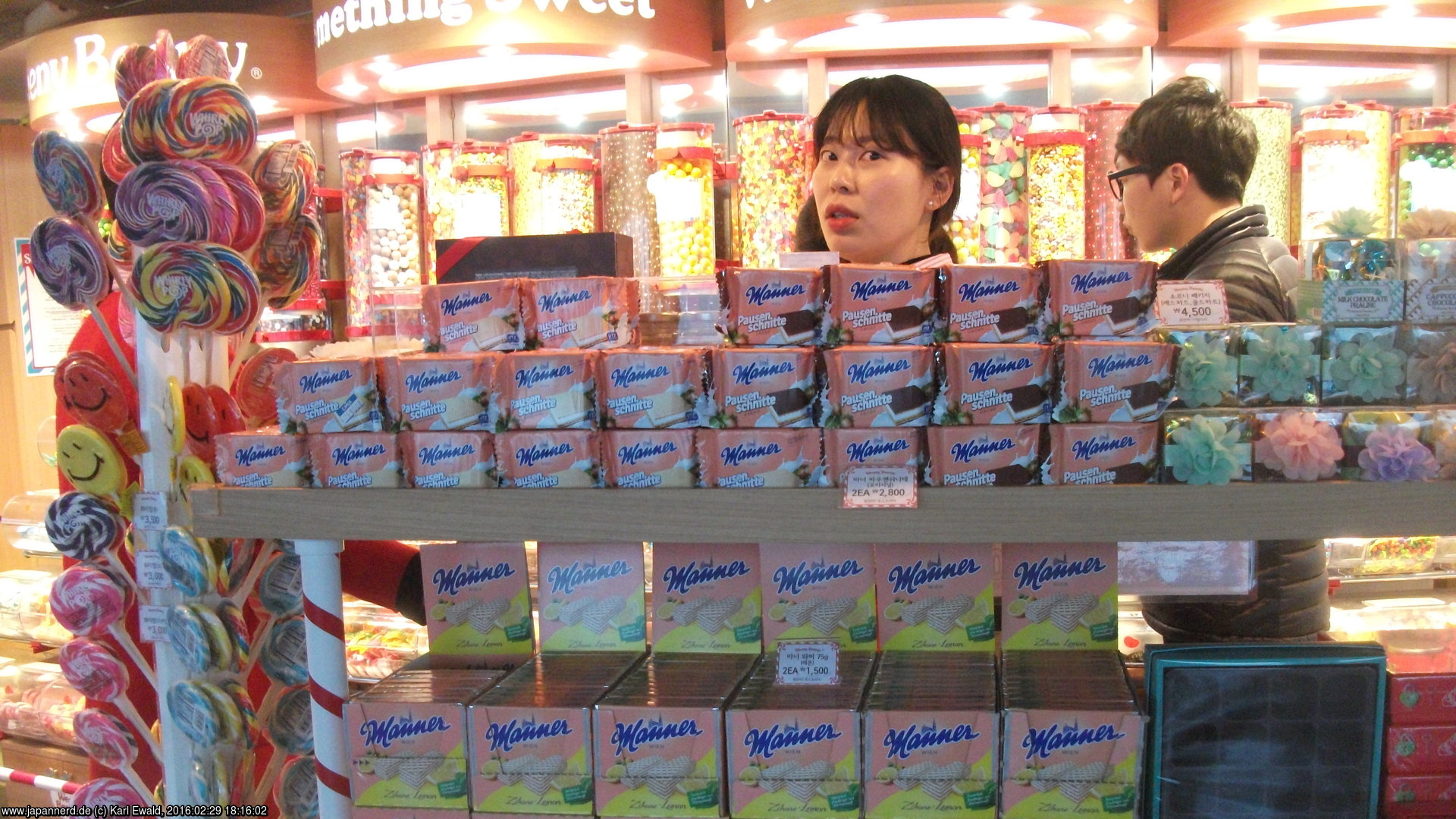 Am Schlecksachstand gibts neben Riesenlollis und Bonbons nach Gewicht auch Manner Pausenschnitte und Manner Zitrone: