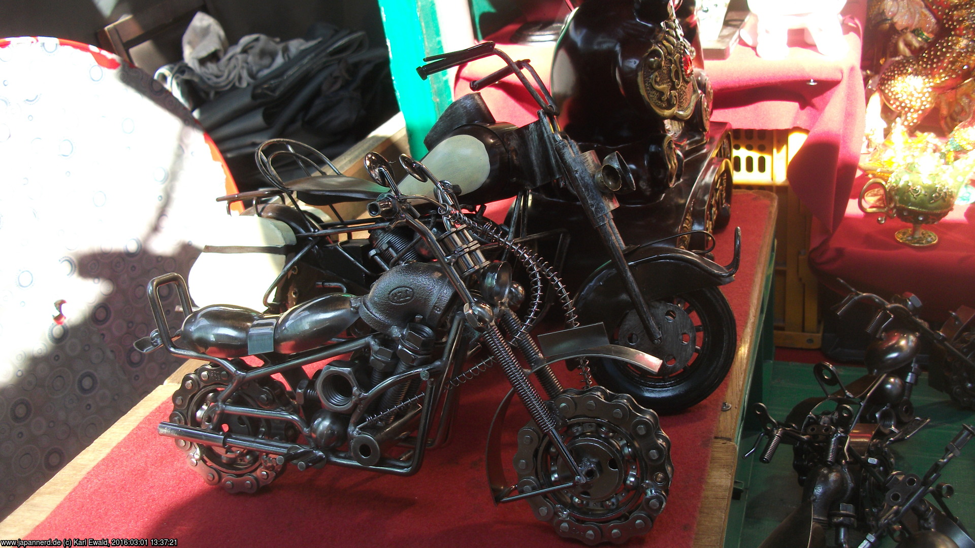 Hinter dem Stadttor befindet sich eine Reihe von Marktständen, dieser hier hatte interessante und sehr detailliert gemachte Metallkunstwerke: