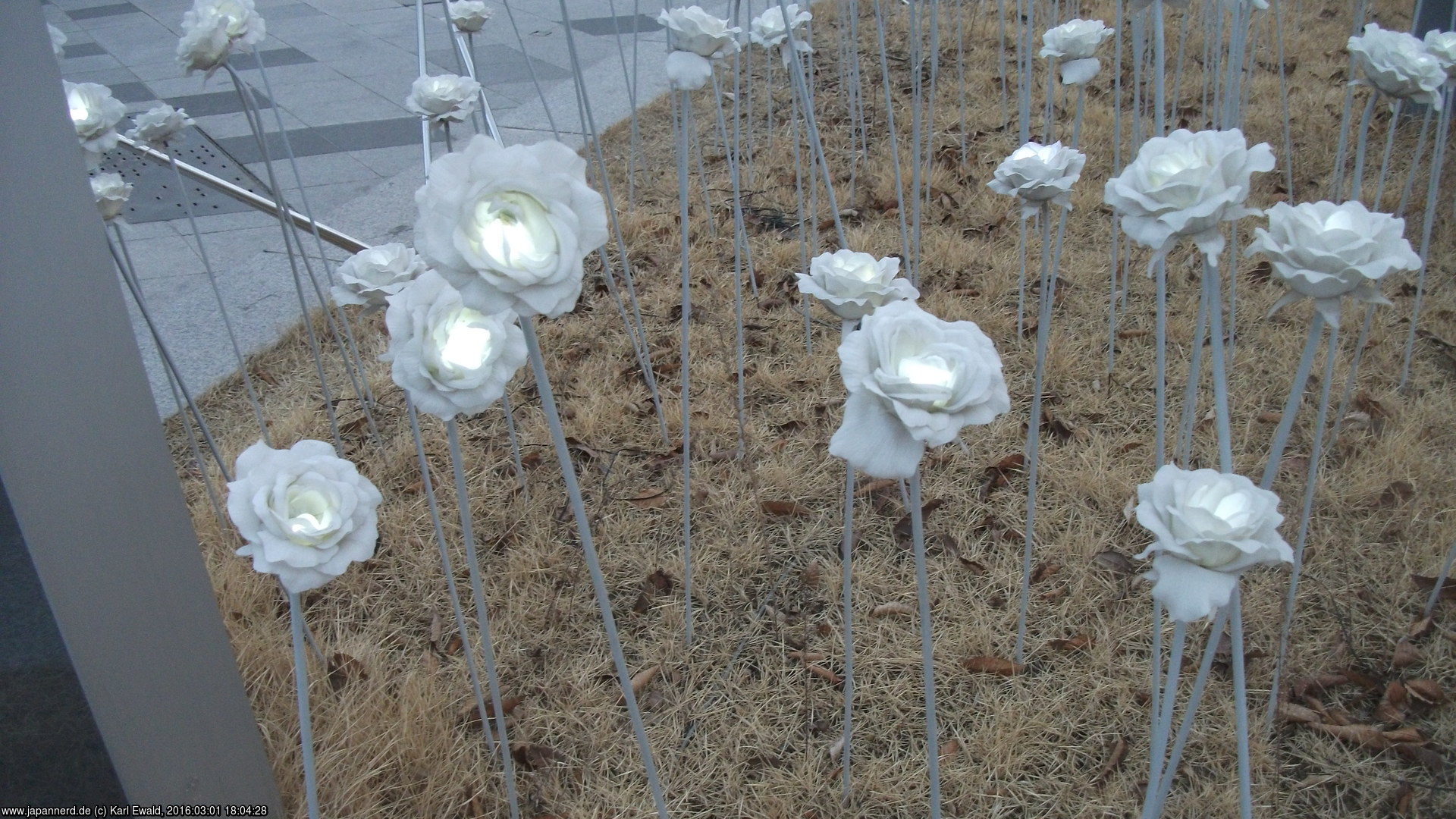 Bekannt ist das Gelände schließlich auch für seinen “Rosengarten”, wo tausende Plastikrosen von der Dämmerung an ihre weißen LEDs einschalten: