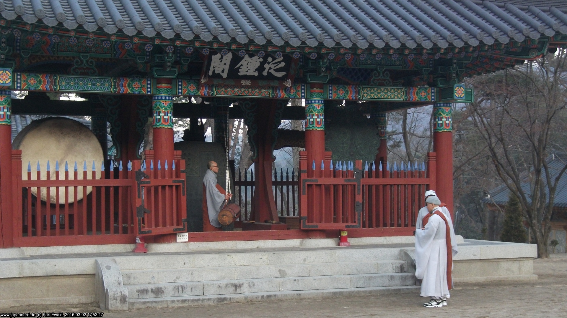 Ein wichtiger Ort neben den Bethallen ist der Glockenpavillion. Er beherbergt nicht nur die Glocke, sondern die vier Dharma-Instrumente:
