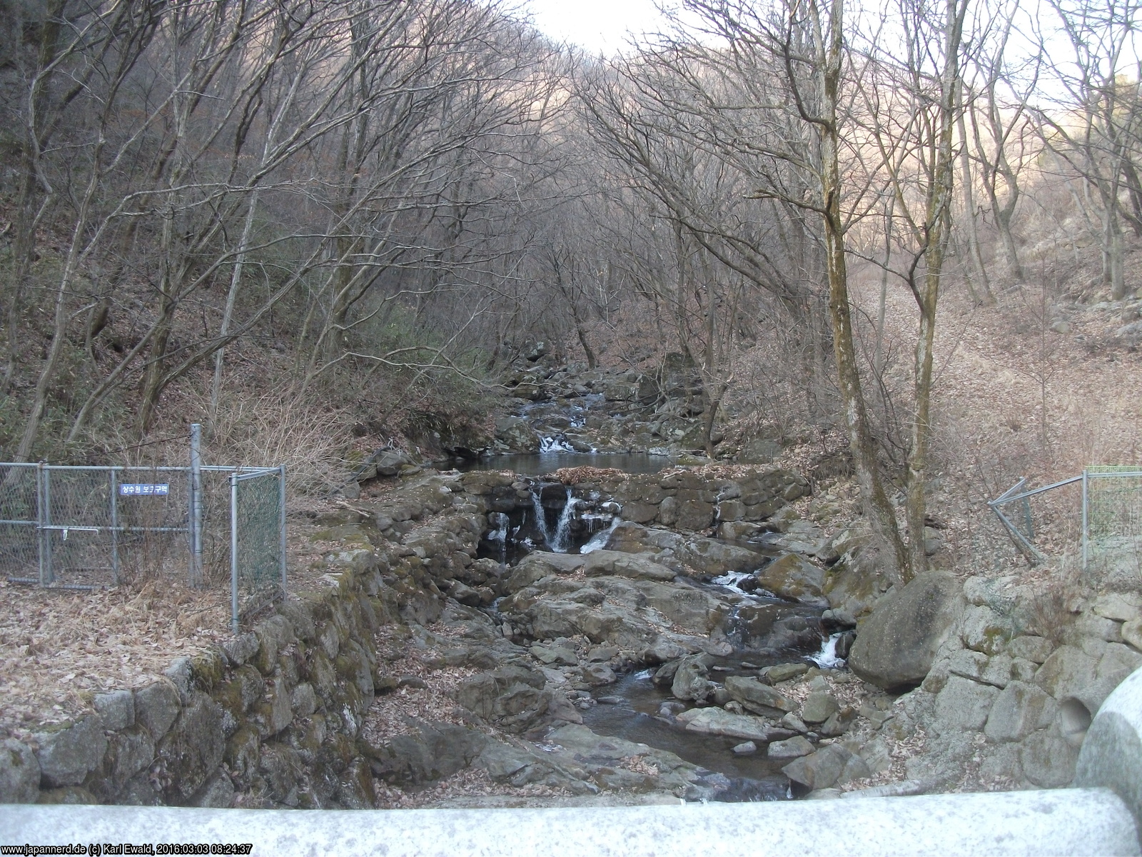 Etwas später also starteten wir dann eine Wanderung zu einer Einsiedelei, von denen es oberhalb des Tempels fünf gibt. Unser Ziel war Myeongjeokam. Der Weg quert einen Bachlauf:
