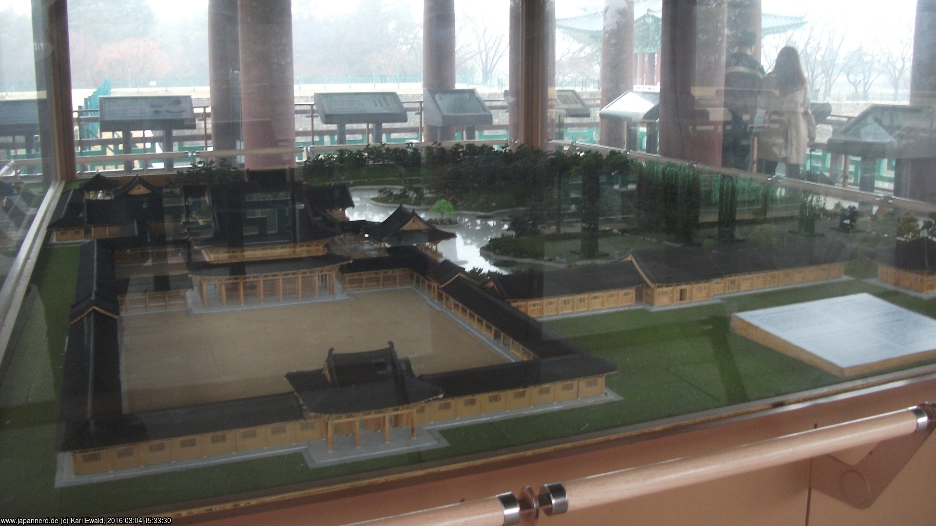 Korea, Gyeongju: Wolji Pond: Modell des ehemaligen Donggung Palastes