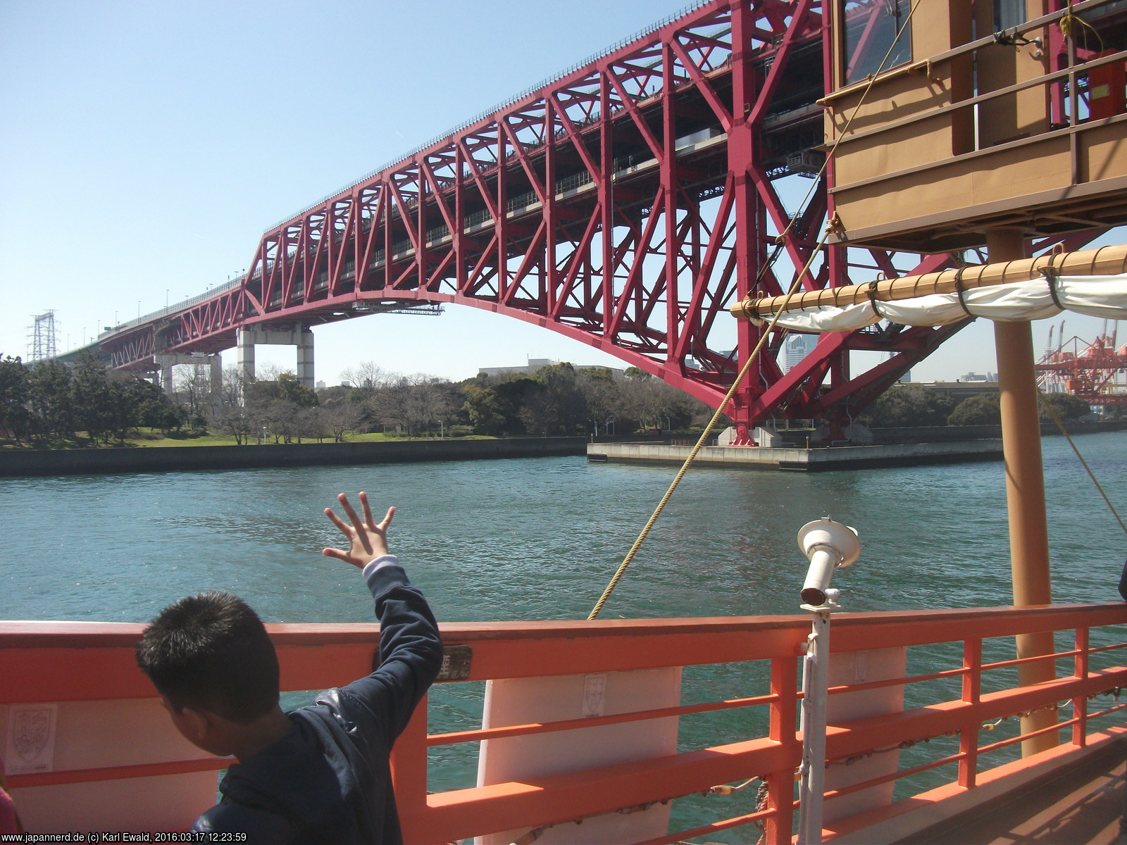 Osaka, Hafenrundfahrt: diese Brücke enthält zwei Fahrbahnen übereinander