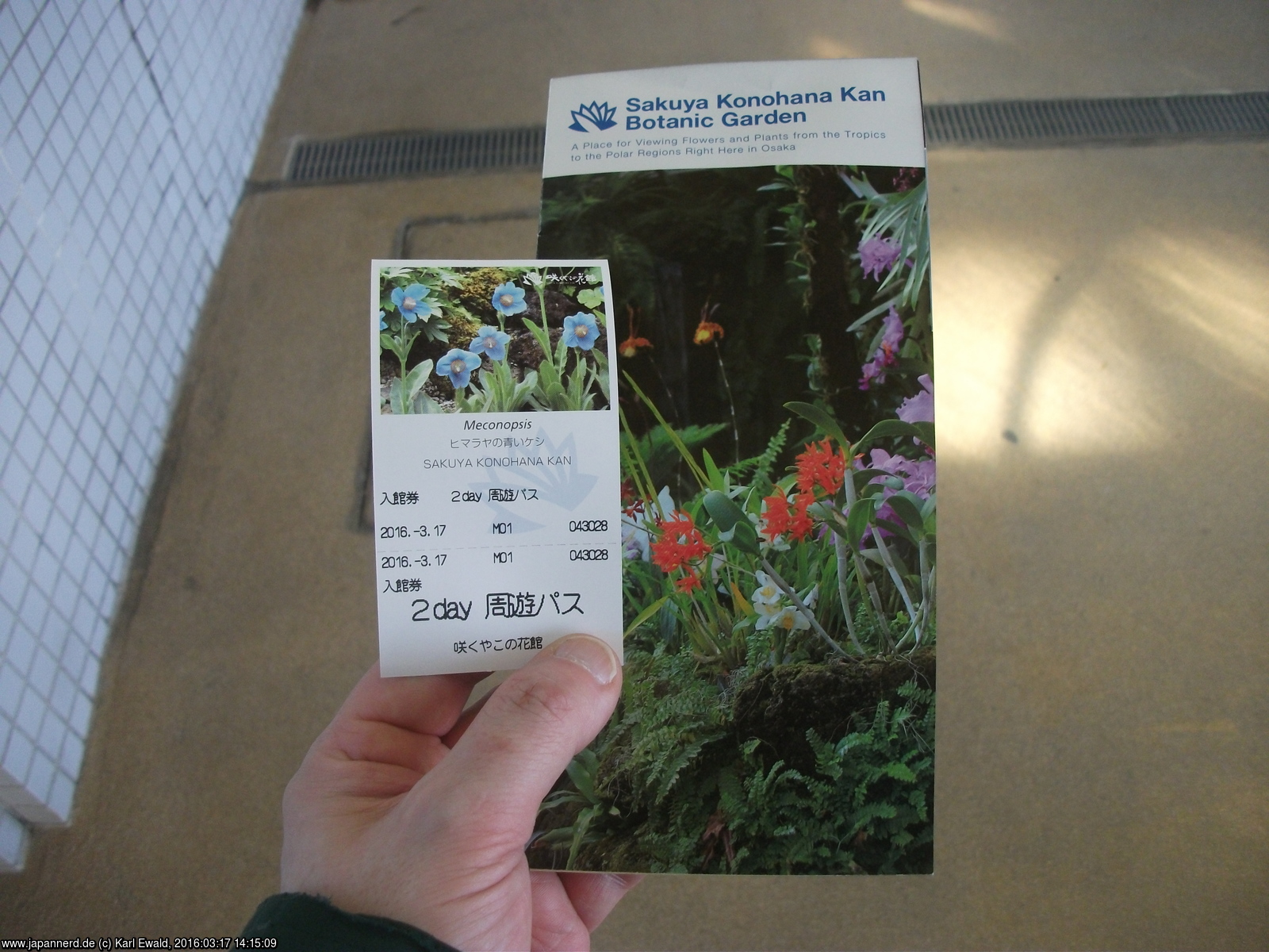 Osaka, IGA-Gelände: Ticket und Faltblatt für den Sakuya Konohana Kan