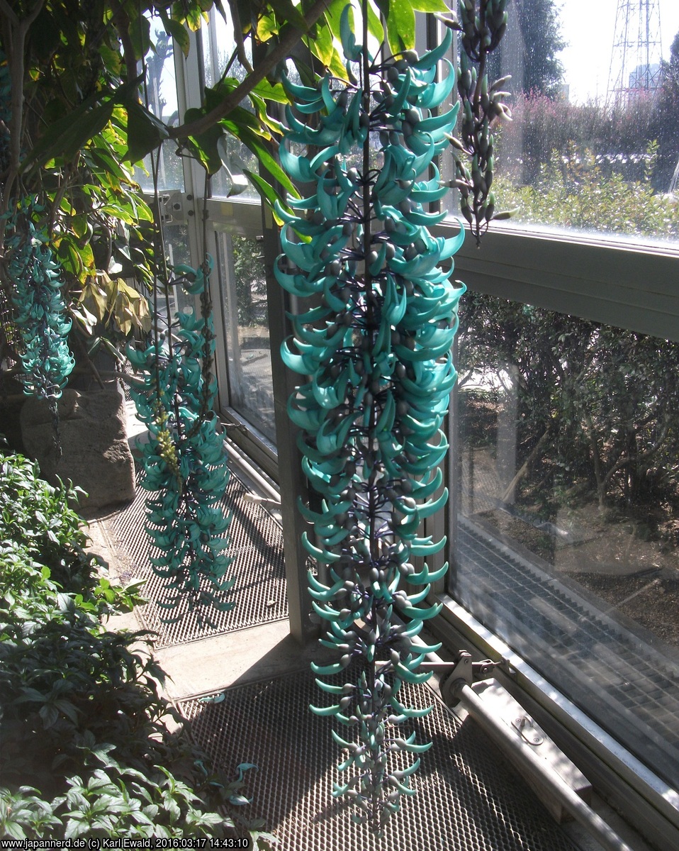 Farblich besonders faszinierend fand ich den türkis blühenden Jadewein, ein von den Philippinen stammendes Bohnengewächs.