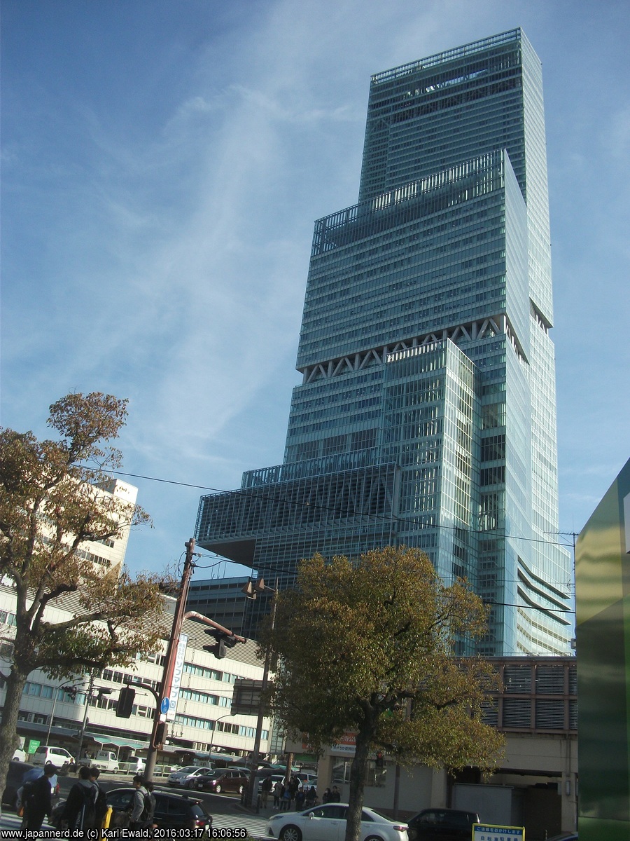 In Tennoji angekommen, fällt der Wolkenkratzer Abeno Harukas auf. Das 300 Meter hohe Gebäude löste nach 20 Jahren den Landmark Tower in Yokohama als höchstes Gebäude Japans ab. Im November 2013 hatte ich das Ding schon wahrgenommen, da war es fast fertiggestellt.