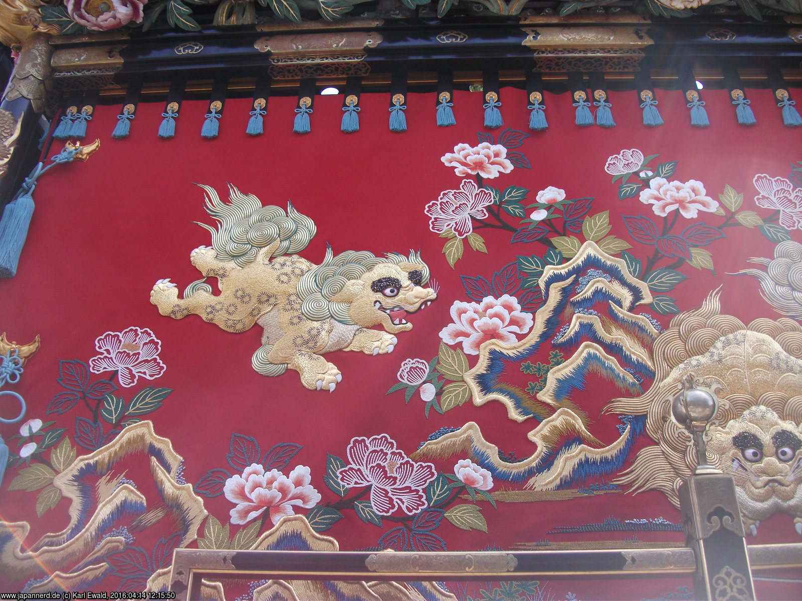 Takayama Spring Matsuri: Festwagen Gotaisan, Detailansicht Stickerei