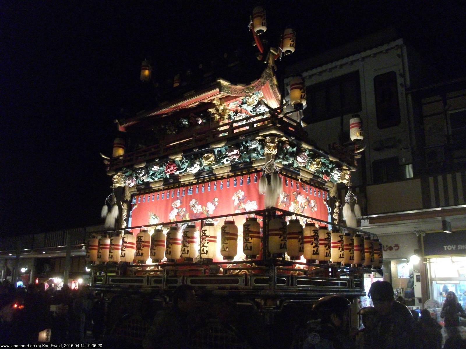 Takayama Spring Matsuri: Nachtparade der Festwagen, Konkotai von der Seite
