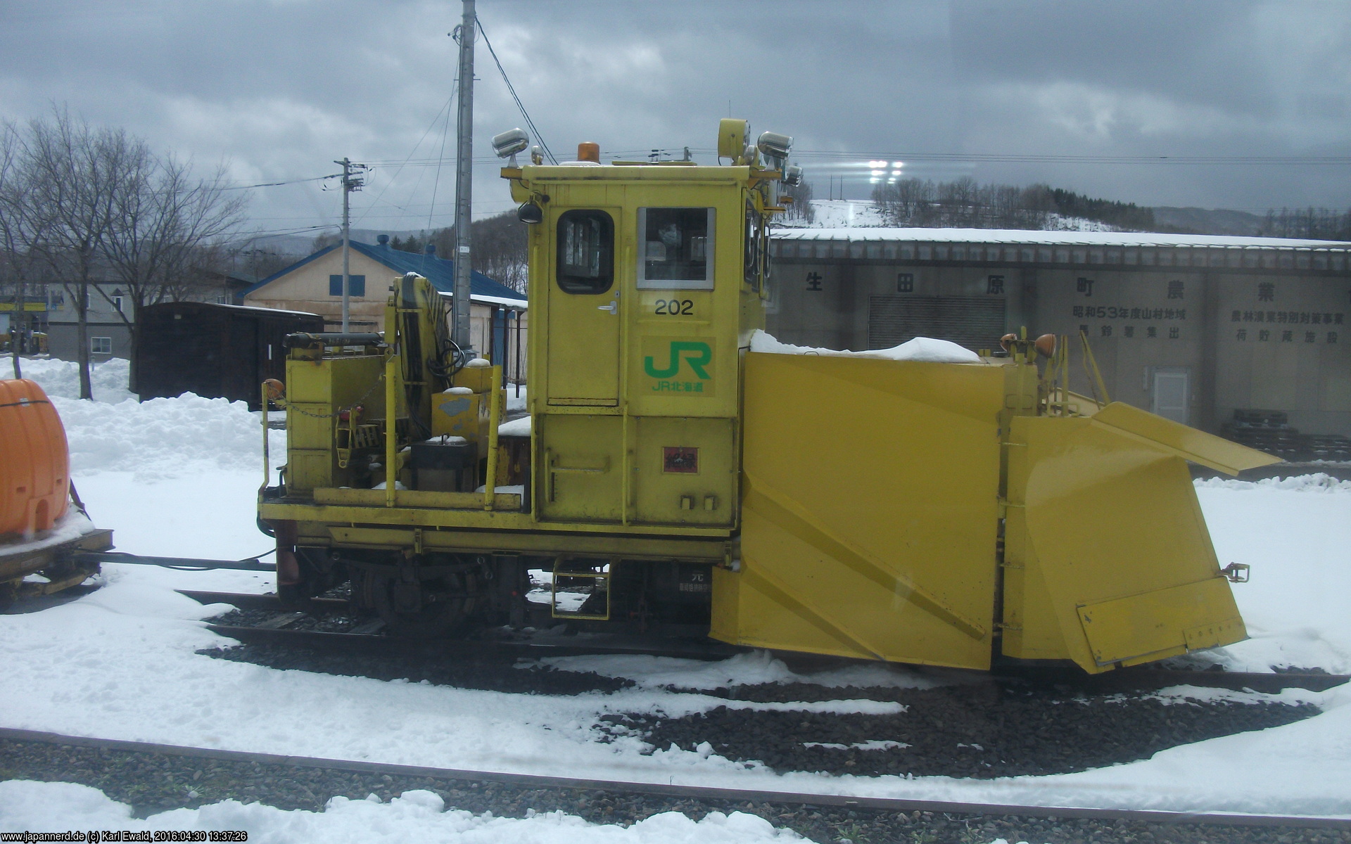 Wenn jetzt noch so viel Schnee liegt, muss der Winter heftig sein. Die diversen Schneepflug-Bahnfahrzeuge stehen nicht von ungefähr überall auf Hokkaido bereit.
