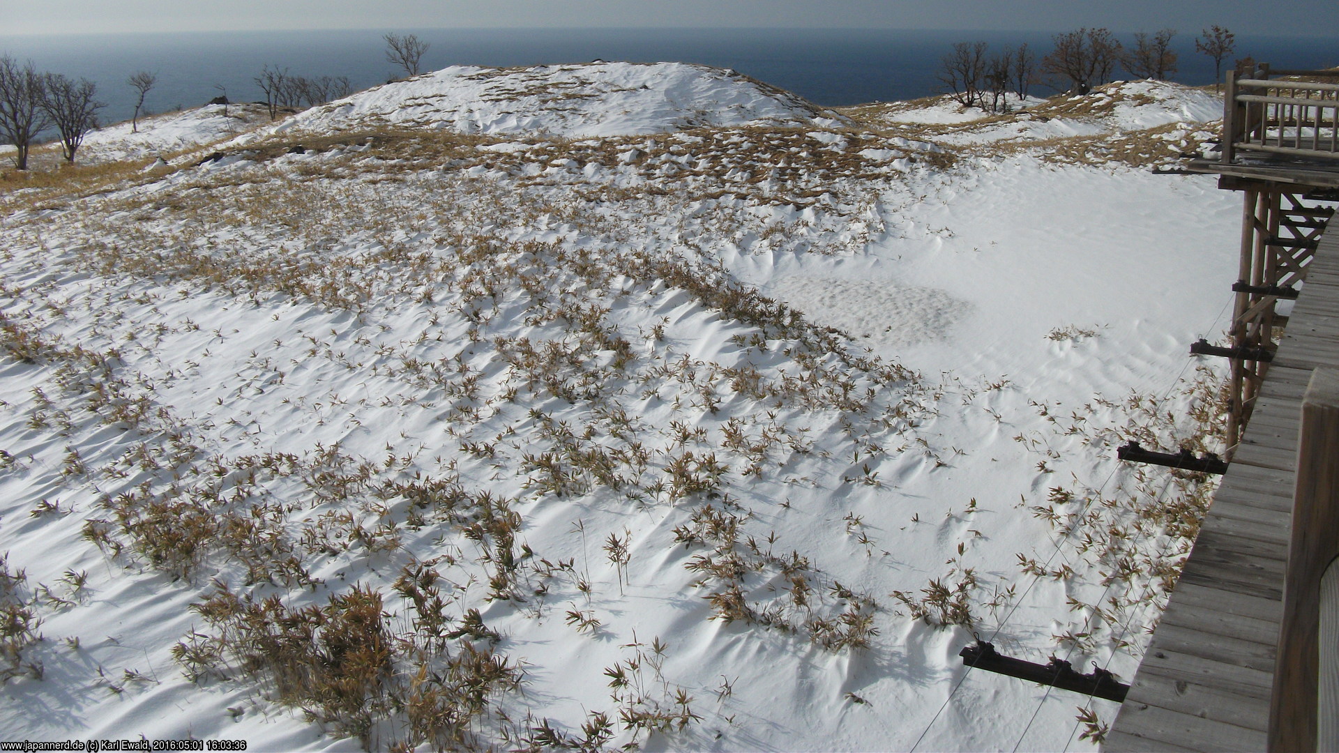 Auf dem Weg wurde der Schnee immer dünner, während er im Wald noch dick gelegen hatte. Offenbar hatte der Wind vom Meer her den Schnee auf der offenen Grasfläche schon weitgehend weggeblasen, so dass die Sonne den Rest leichter schmelzen konnte.