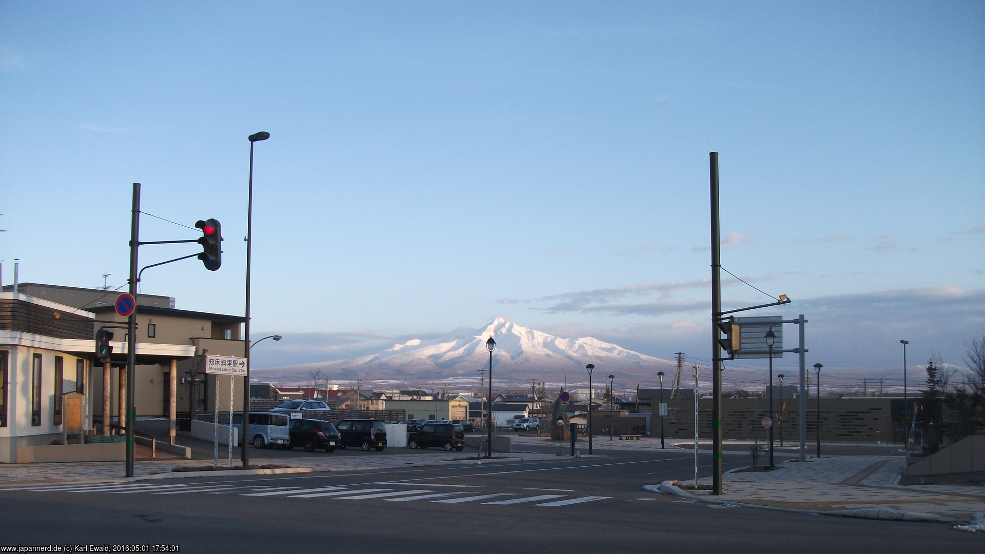 Blick von Shiretoko-Shari (Kreuzung vor dem Bahnhof) auf Mt.Shari