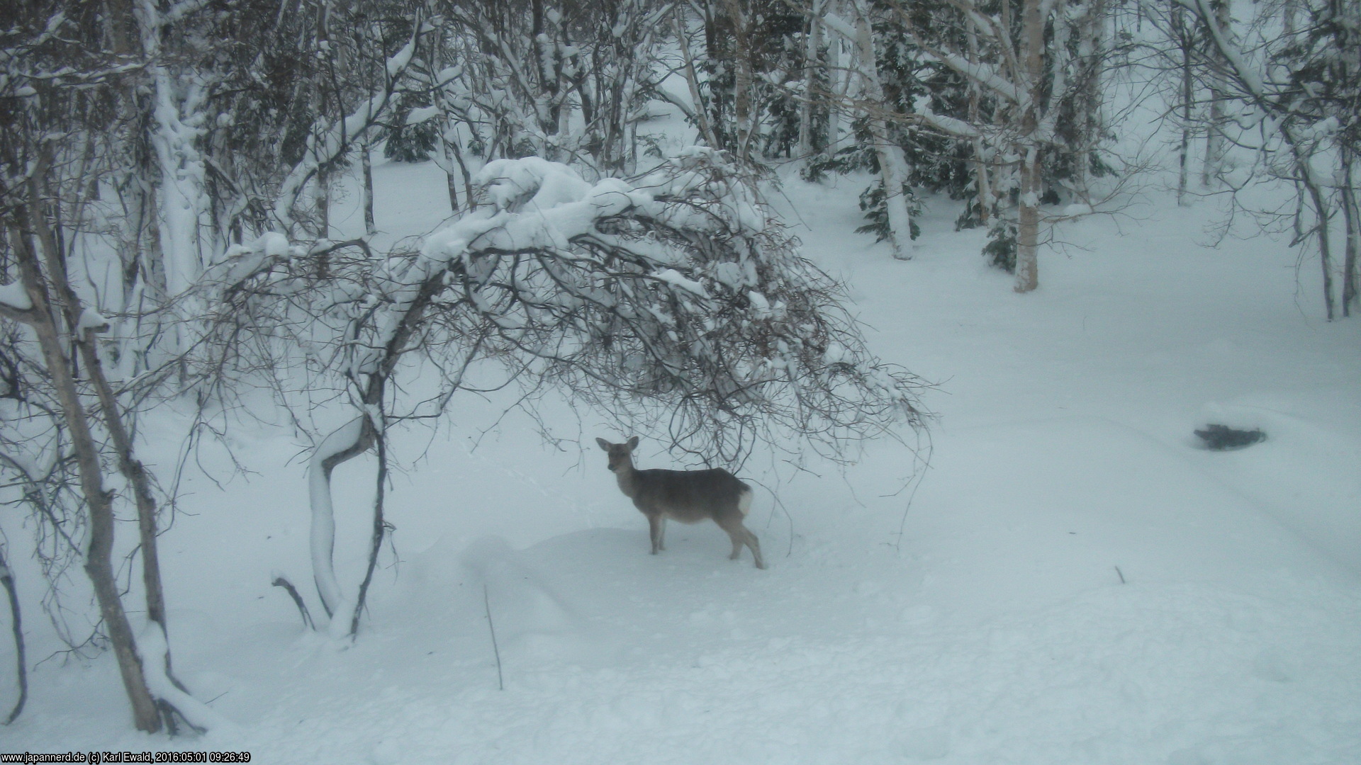 Shiretoko: Zwerghirsch (Shika) im Schnee