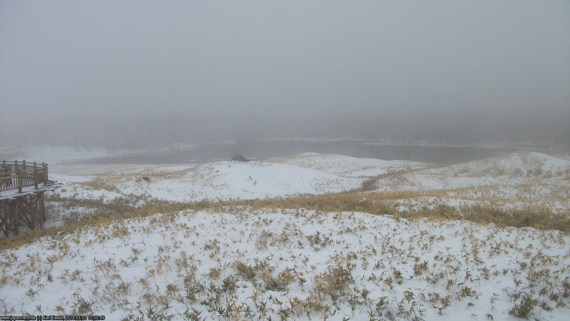 Am nächsten Morgen hat der Wind nachgelassen, aber es ist trüb. Die Dame vom Bus Terminal erklärt, dass der Bus nur bis zum Nature Center fährt, nicht zu den Fünf Seen. Ich kaufe das Ticket dorthin (1800 Yen), dort soll man immerhin Informationen und einen Film zu sehen bekommen und ein Wasserfall ist mit einer kurzen Wanderung erreichbar.