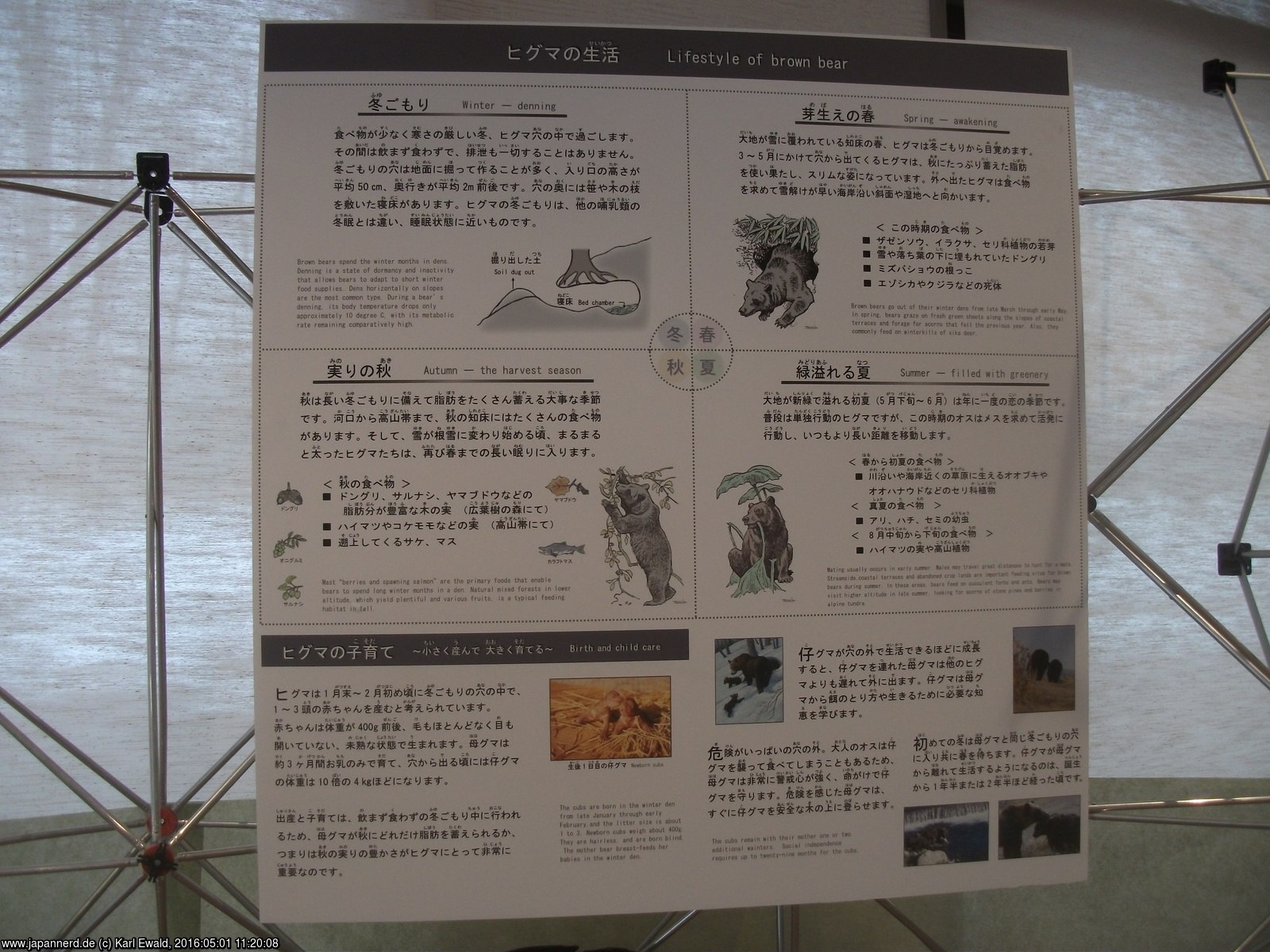Das Nature Center ist ein, wie in Japan üblich, sehr gut gemachtes Informationszentrum über die Tierwelt und die Arbeit der Parkschützer. Hier eine Informationstafel zur Lebensweise des Bären.