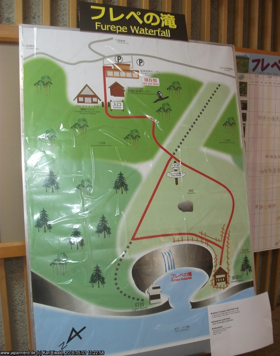 Shiretoko Nature Center: Lageplan der Furepe Wasserfälle