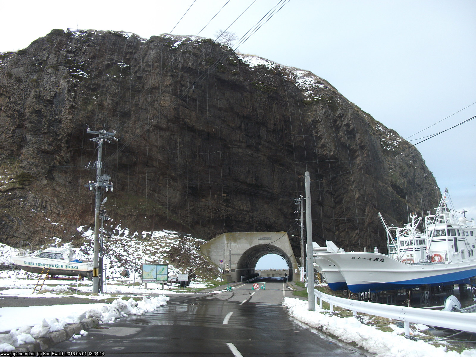 Utoro, dieser Tunnel im Felsen führt zum Hafen für Ausflugsboote