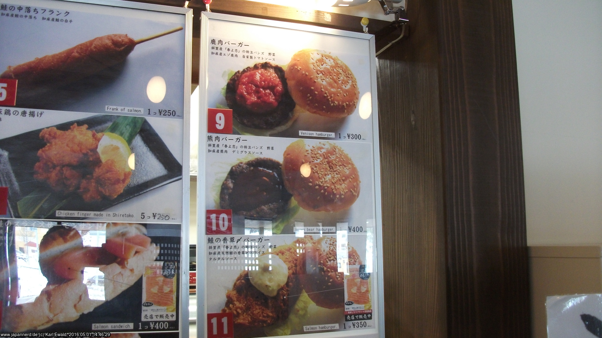 Utoro, Menü im Shiretoko-Imbiss, z.B. Braunbärburger