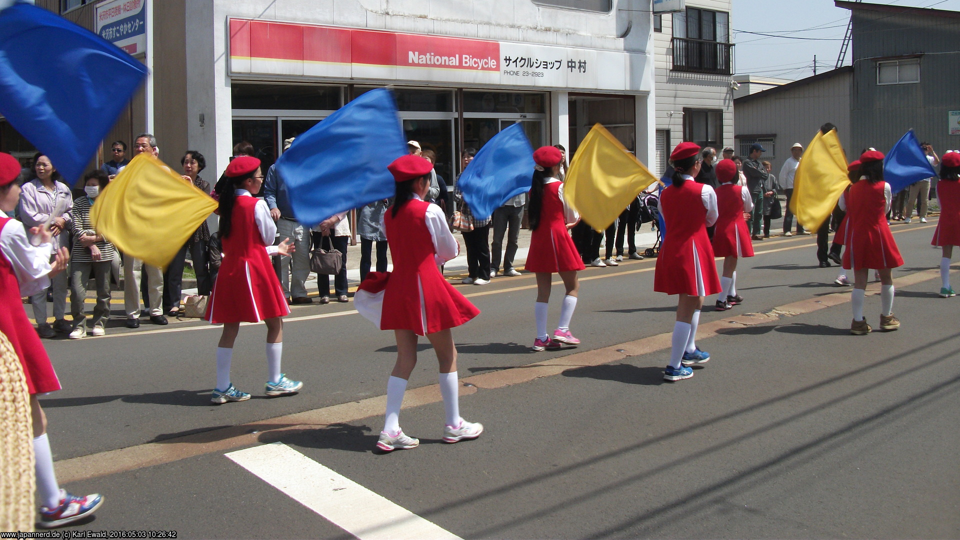 Yonezawa, Uesugi Matsuri: dann kommen Fahnenschwingerinnen