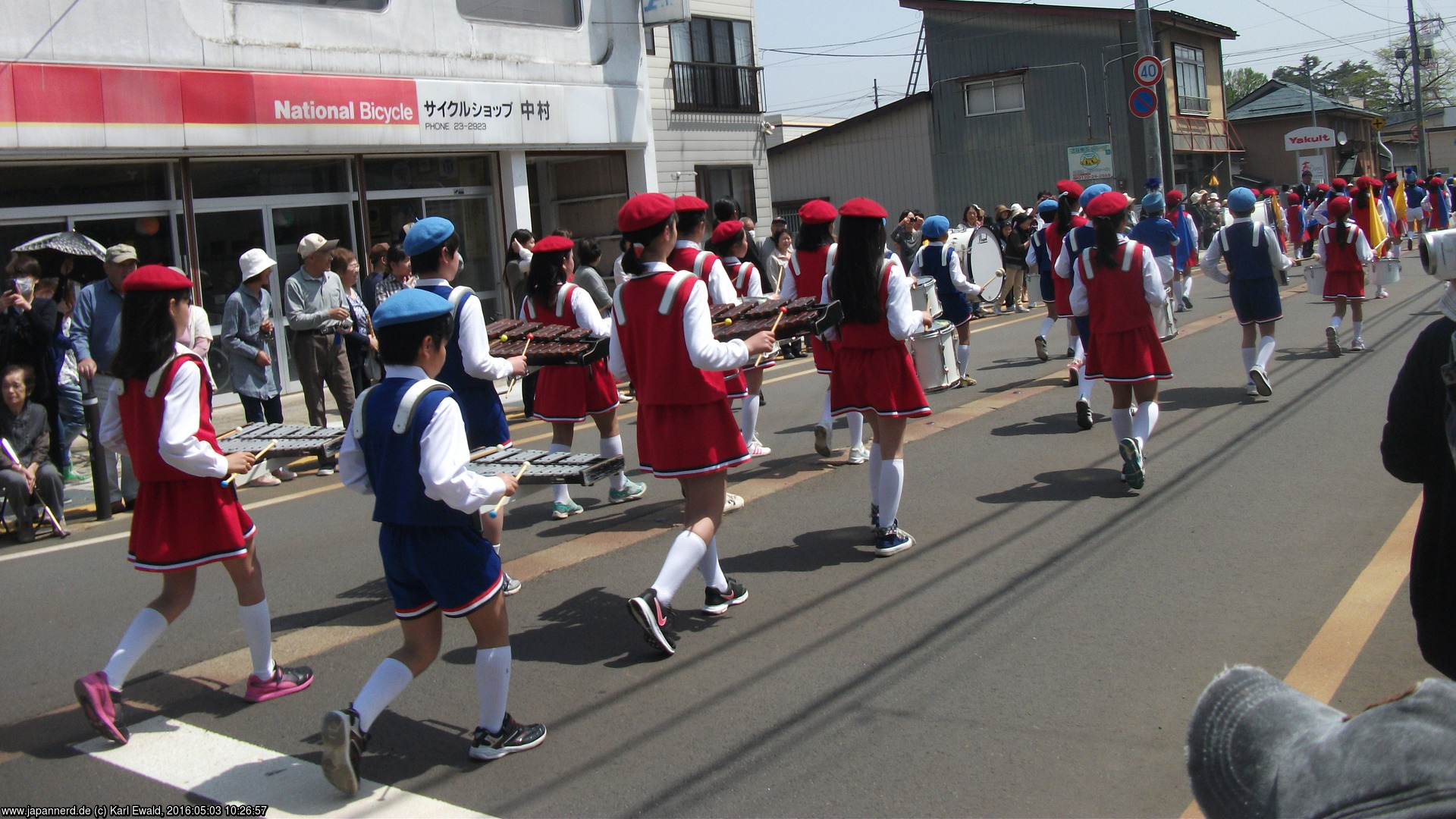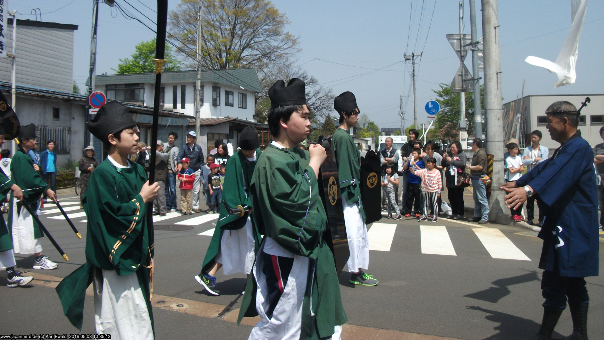 Den Auftakt bilden am Vormittag zwei Paraden: eine ab 09:30 mit Kindern und Mikoshi, die das Stadtzentrum umrundet, eine zweite mit den Kriegern, die ab 10:30 etwas kürzer von einem Sammelplatz in Zentrum zur Schlachtwiese führt. Unterwegs verbinden sich die beiden Züge zu einem langen, schlagen einen Haken am Bahnhof vorbei, und an der Wiese rücken dann die Kämpfer ein, während die anderen vorbeiziehen.
