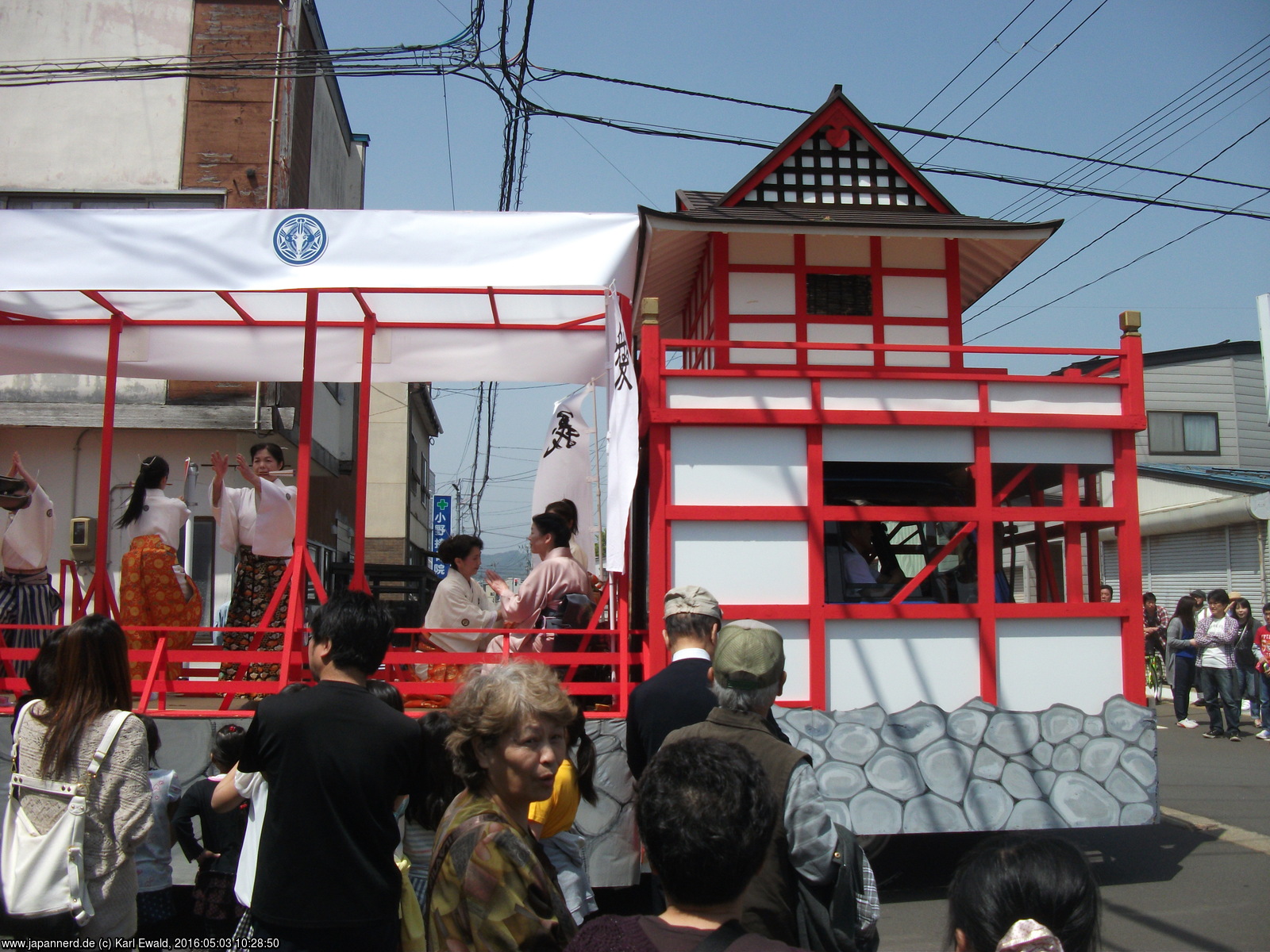 Yonezawa, Uesugi Matsuri: dieser Wagen mit Tänzerinnen ist als Burg gestaltet
