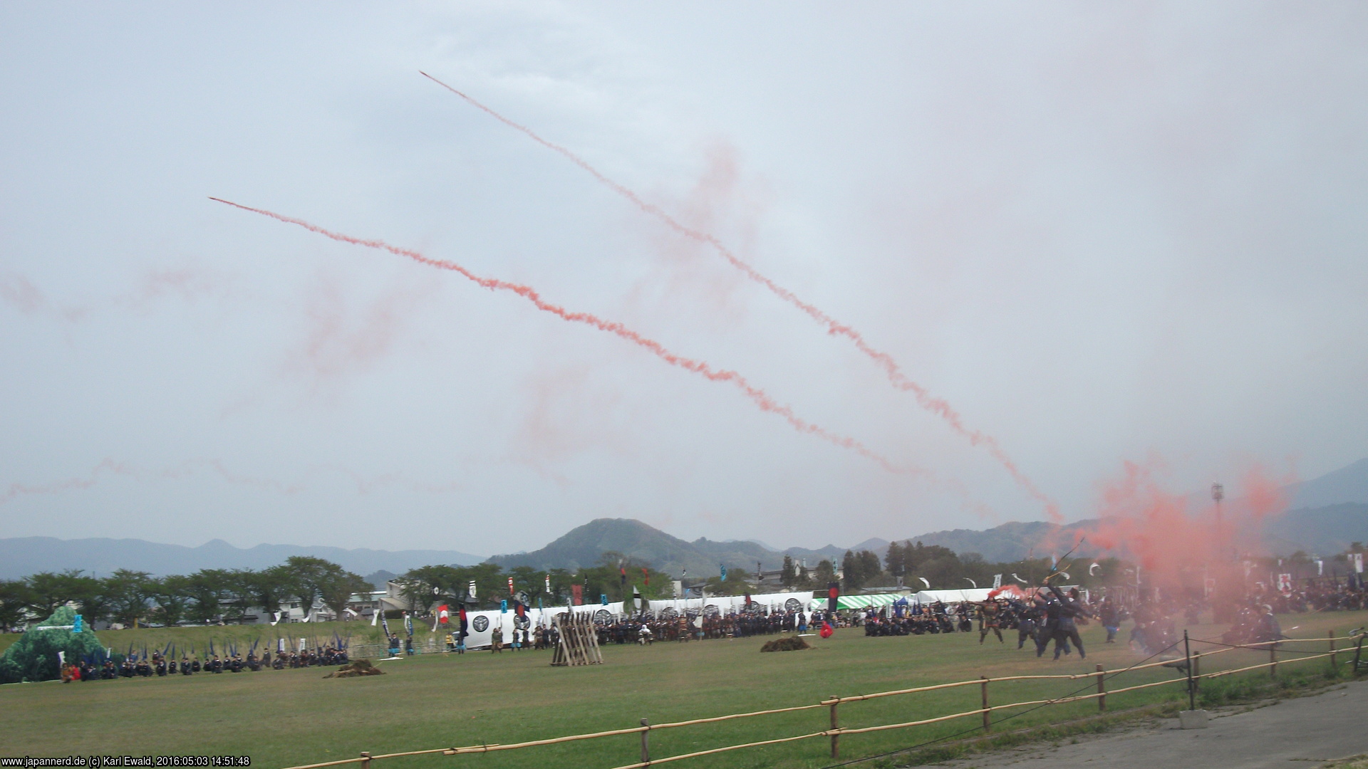 Am 29.4. gab es ganztags eine Auftaktveranstaltung mit Trommeln und Tanz, und am 2.5. nachmittags und abends ein „Buteishiki“ - eine Kriegerparade und eine Zeremonie, die vor der Schlacht abgehalten wird.